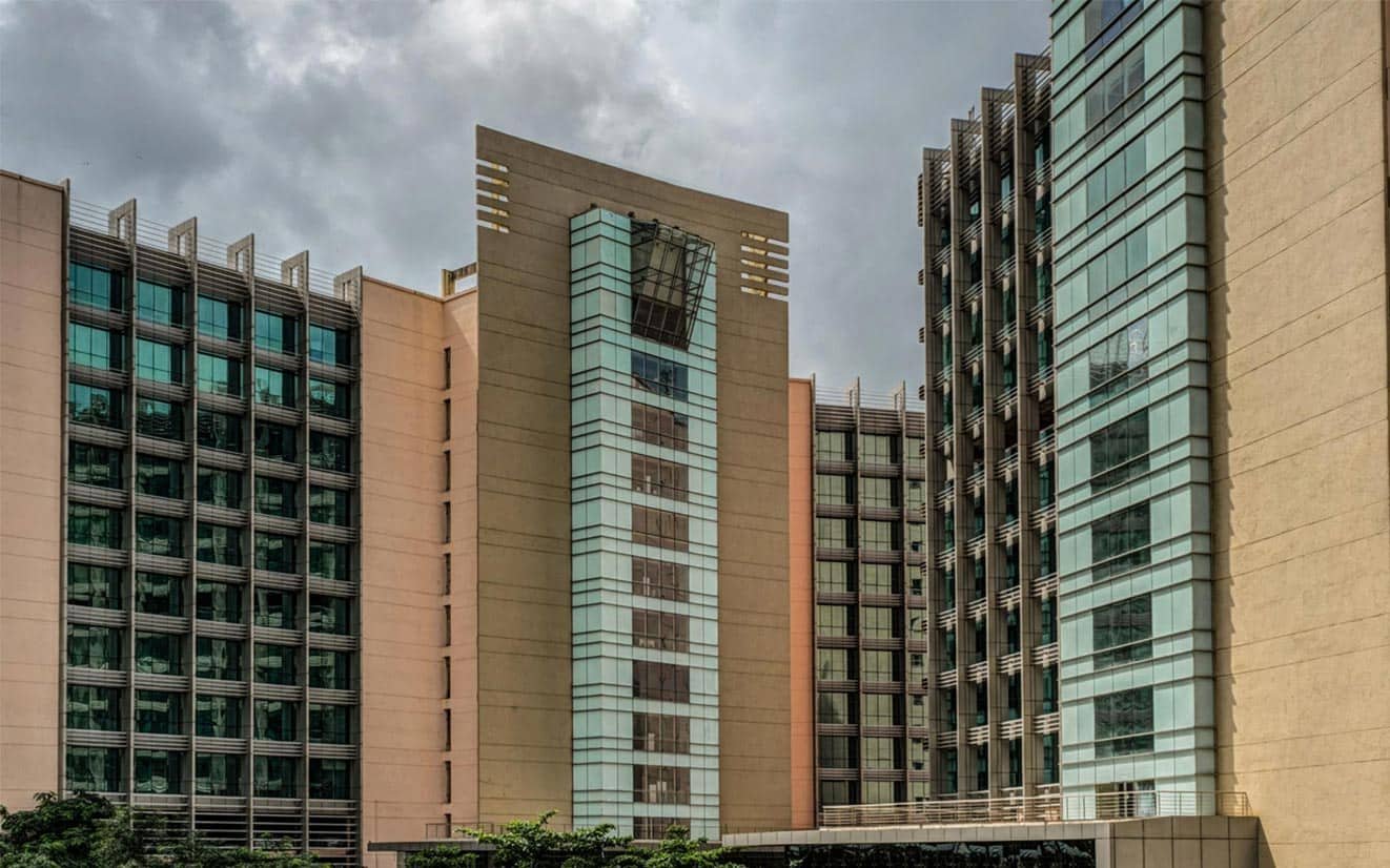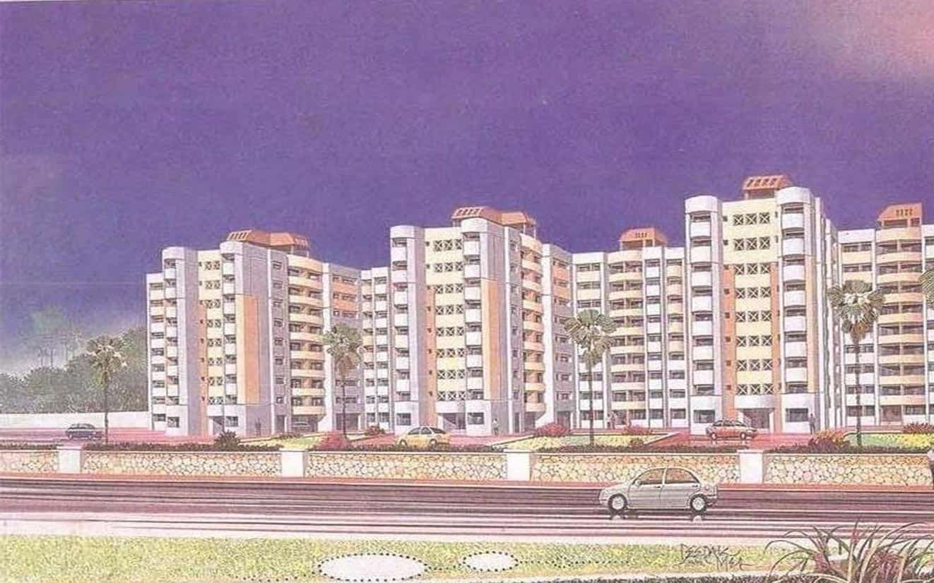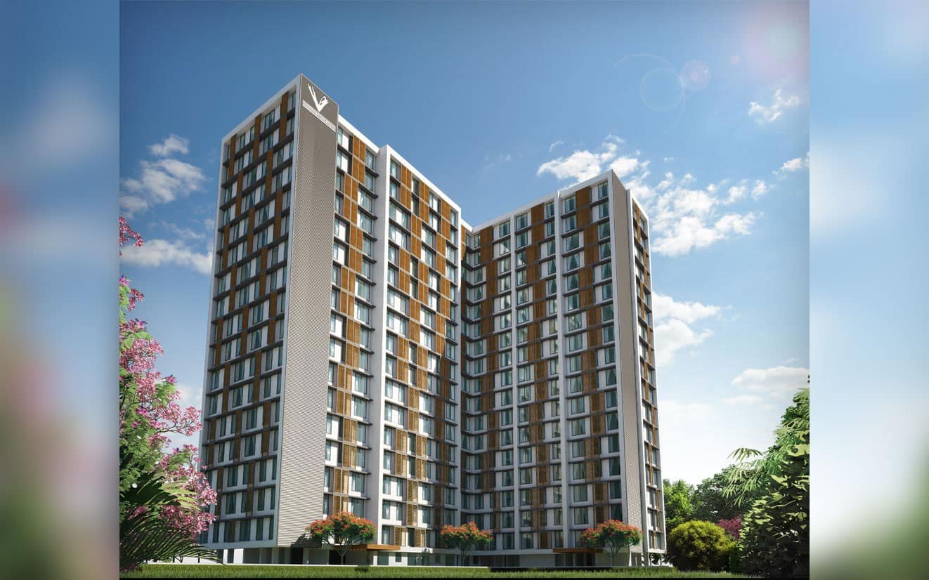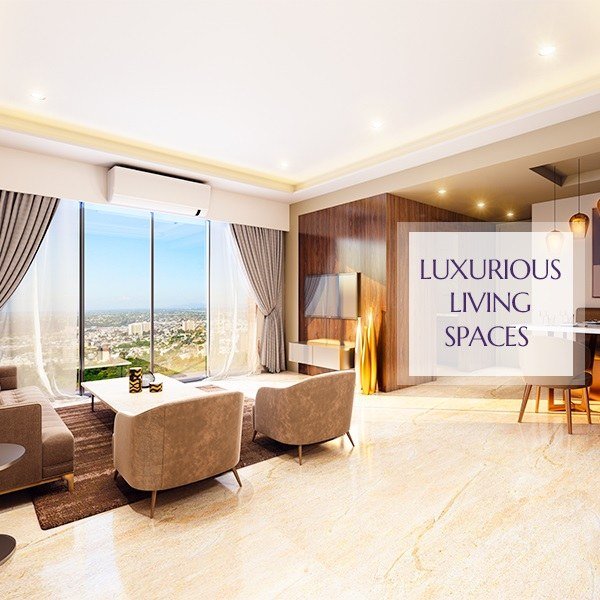 A landmark G+21 floor high rise recognisable from afar with a gleaming copper crown a top its head.